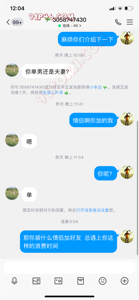 有这样的我都无语了,还有男的装女的,来勾引你,跟你说骚话,让她发句语音都不敢。在网上偷几招别人图,就以为自己是女的了。真恶心人,不知道啥意思。