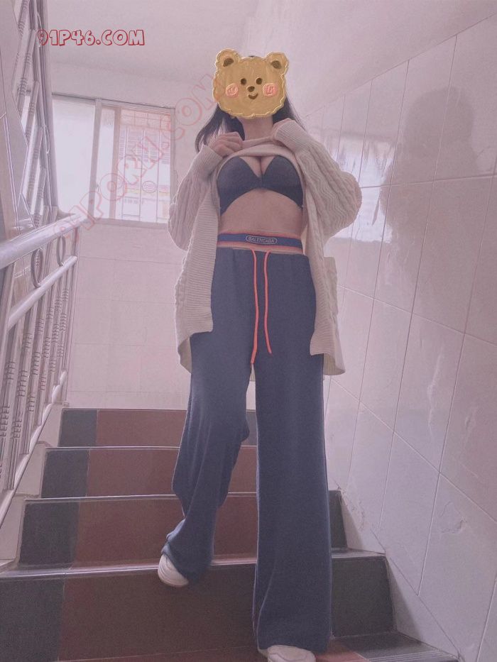 楼道很少人,但是还是有点小害怕,也不敢脱太多
