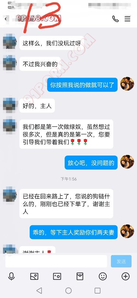 他们是长沙的夫妻来杭州旅游,通过朋友介绍加的我,简单沟通后双方就感觉挺好,沟通后了解带到他们是绿奴夫妻,但是之前玩的都是简单的单男都只顾自己感受,虽然玩过几次,但体验感都不是很好,所以很想找一个懂他们的绿主单男吧,他们夫妻平时工作压力很大,所以很想有个主来调教他们,让他们诚服,得到主人的认可,丈夫渴望把美丽的妻子献给强壮强势的主人,看着主人玩弄他最心爱的妻子,把他的妻子调教成一只荡妇形态,来满足自己内心的绿帽奴情结。按照见面前的要求,我下午4点左右来到酒店房间门口,按下门铃,门开启后,一个美丽的人妻就跪在酒店房间门口处,脖子上戴着狗链,双手把狗链举过头顶给我…她丈夫开完门也跪在妻子旁边,双手举着一根打屁股的小鞭子,我接过狗链和皮鞭,牵着母狗往前走到沙发旁边坐下,她跟着跪爬过来,后面跟着她的丈夫也跪爬过来,两夫妻就跪在我面前,我让他们两夫妻跪好,双手放在膝盖上,身体往前倾,头低着,不准他们平视我,我说:现在我们开始认主仪式,从现在开始,你们要绝对服从我,心里要把自己当成一只很贱的狗,现在心里默念三遍“我要当青哥的狗奴”,然后给主人说,先是她丈夫说的:主人,我要当青哥的狗奴,然后是她老婆说的。我接着说:接下去调教如果你们比较爽的时候就叫主人或者爸爸,如果接受不了的就说:主人我有点不舒服,我就收到信号了!
