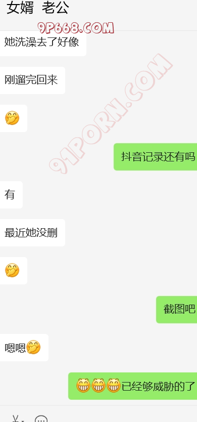 女婿准备拿抖音聊天记录去问问岳母,因为女婿一直登录着她的抖音。我今天故意和她在抖音撩骚了一上午,女婿截了图。